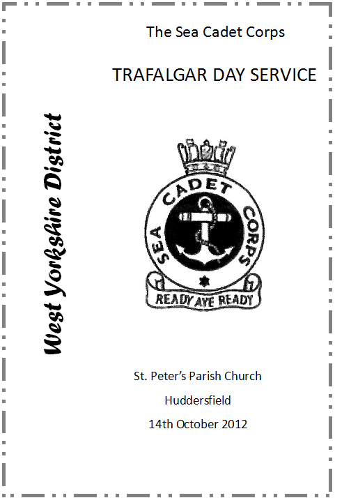 The Trafalgar Day Parade will include 150 Sea Cadets from units across West Yorkshire, led by the band of The Yorkshire Regiment – after the parade, at 2pm, there is a service in Huddersfield Parish Church.