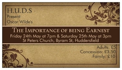 The Importance of Being Earnest – performed by the Huddersfield Drama Society – this Friday and Saturday.