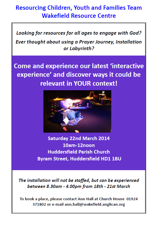 The Resourcing Children, Youth and Families Team from the Wakefield Resource Centre will be laying out a trail in the chancel of Huddersfield Parish Church from Monday 17th March to Saturday 23rd March 2014.