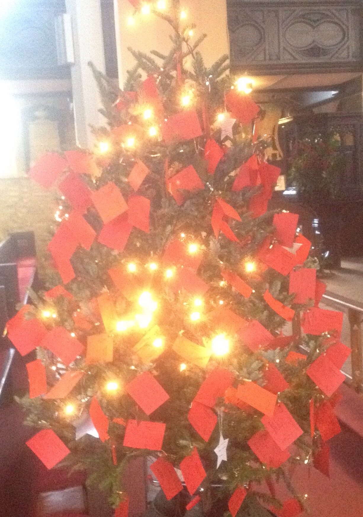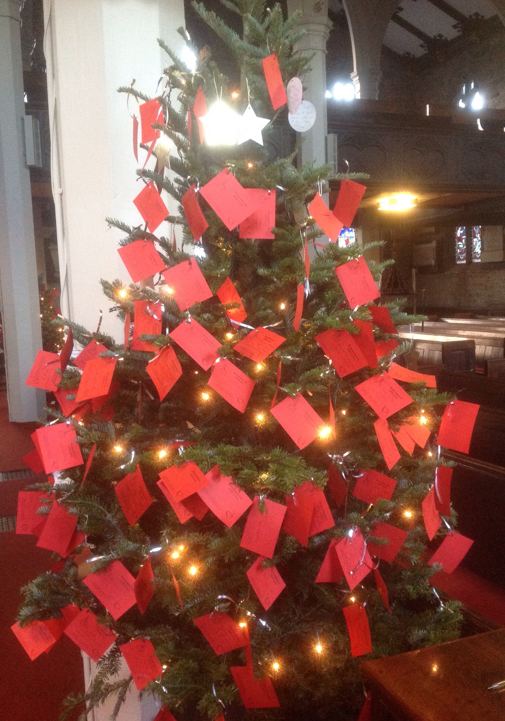 Yesterday’s afternoon service at St. Peter’s focussed upon the Trees of Remembrance, which was full of names tags and stars as well as the list of names that had been left over December.