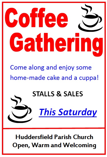 Fundraising, News Coffee Gathering – May Posted by huddersfieldparishchurch on April 30, 2015April 30, 2015 This Saturday – a Huddersfield Parish Church Coffee Gathering. For this event and the May Fair – Wanted – Cakes, Books and Bric-a-brac. Share this: Click to share on X (Opens in new window) X Click to share on Facebook (Opens in new window) Facebook Click to share on Pinterest (Opens in new window) Pinterest Click to share on LinkedIn (Opens in new window) LinkedIn Click to share on Tumblr (Opens in new window) Tumblr Click to share on Reddit (Opens in new window) Reddit Click to email a link to a friend (Opens in new window) Email Click to print (Opens in new window) Print Like Loading... Related