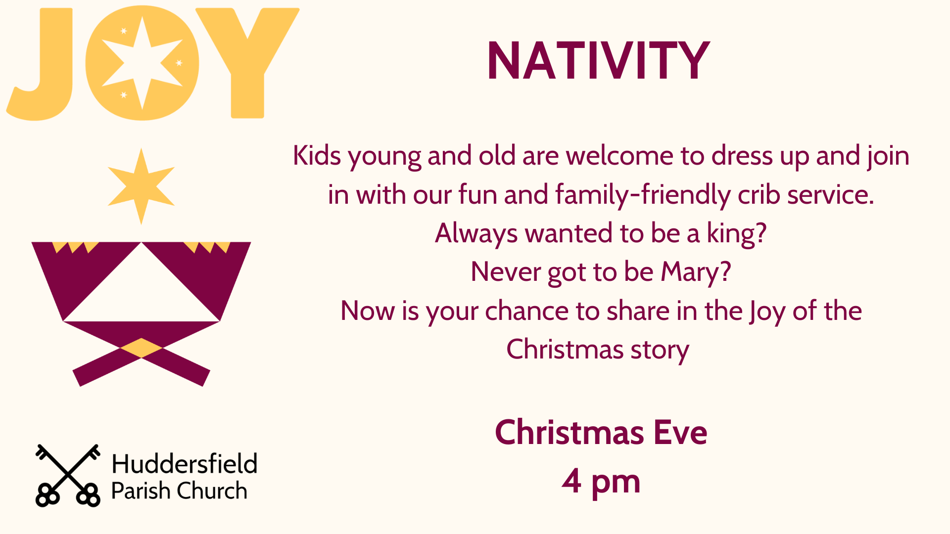 Christmas Eve at 4pm – Nativity Service