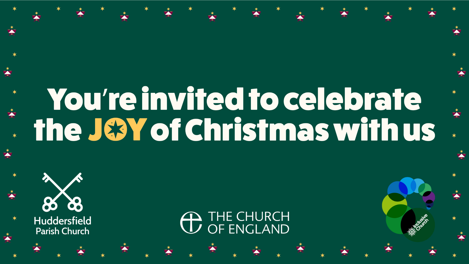 Join us for the Huddersfield Christmas Celebrations, inside and outside. Fun traditional stalls, crafts, baked goodies, warmth, music, an interactive Nativity trail for the children – and always a warm welcome. Come and join us anytime between 11am and 3pm.